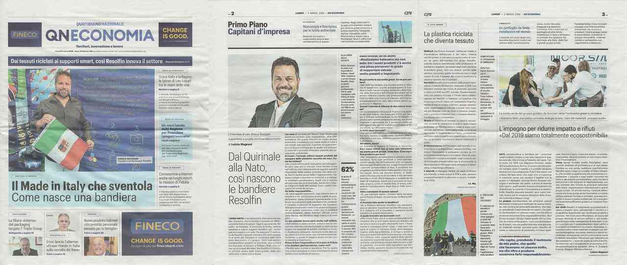 Roma, 04 marzo 2026 — Tre pagine intere, inclusa la prima pagina. Il dorso economico nazionale di QN ECONOMIA —supplemento del circuito Il Giorno, Il Resto del Carlino e La Nazione— ha dedicato un ampio speciale a Resolfin, Resolglass e al percorso imprenditoriale del CEO Enrico Scozzari.